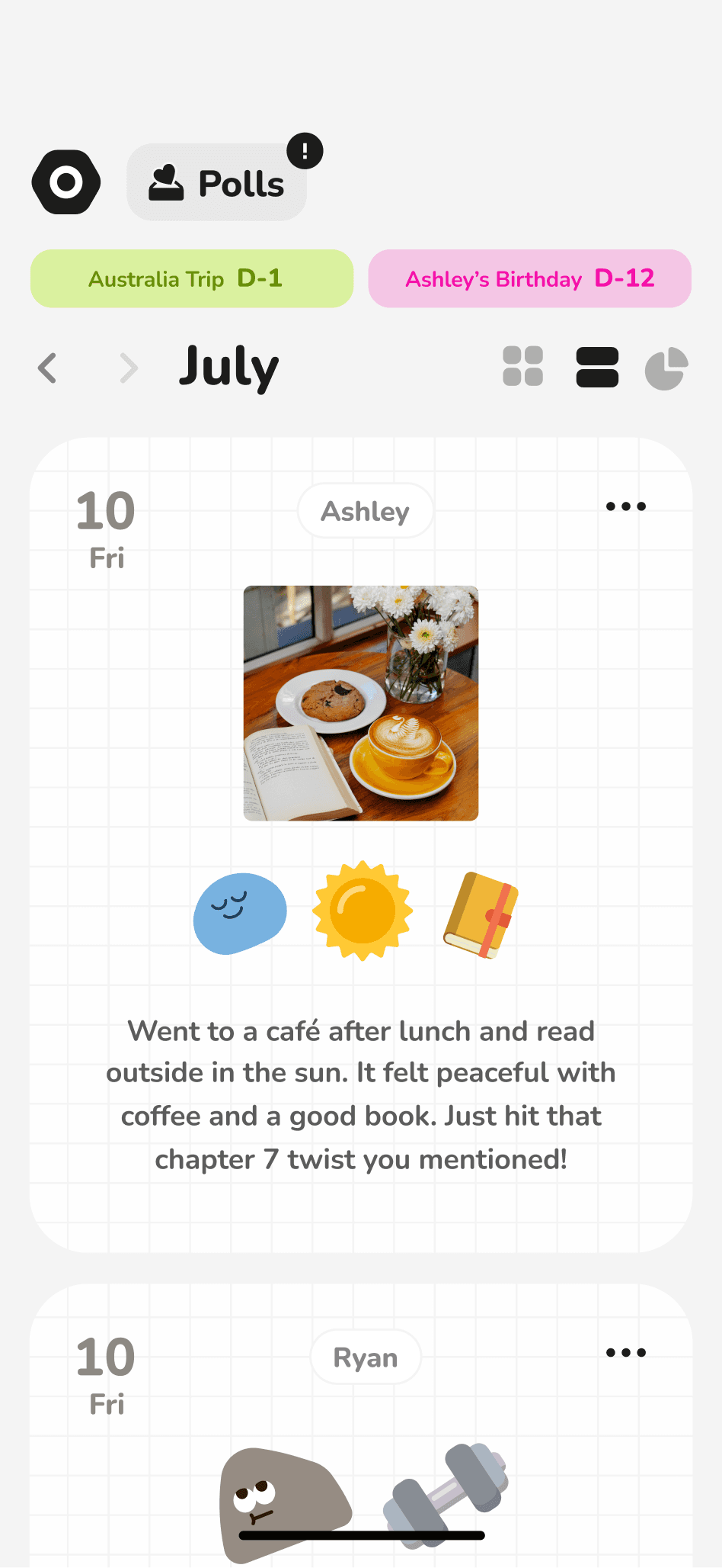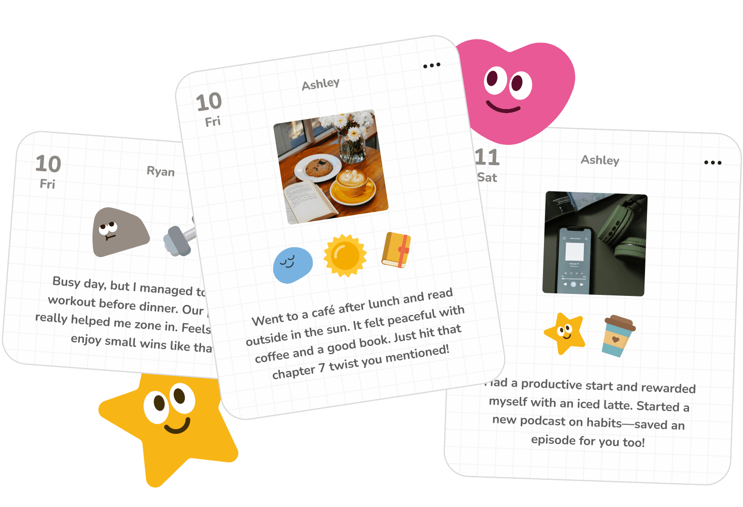 When you can’t be in the same place, it’s easy to lose track of what you’re actually going through. Gachi gives you and your partner one shared space to keep your days, your feelings, and the moments that matter, so even when you’re apart, your lives still feel connected and easy to look back on.